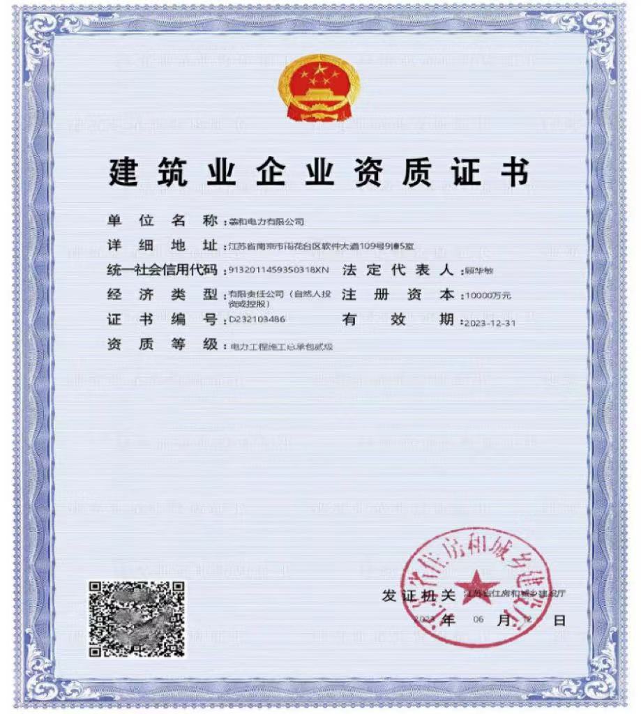 2023年6月12日,羲和電力有限公司順利通過江蘇省住房和城鄉(xiāng)建設廳審批,喜獲電力工程施工總承包貳級資質。